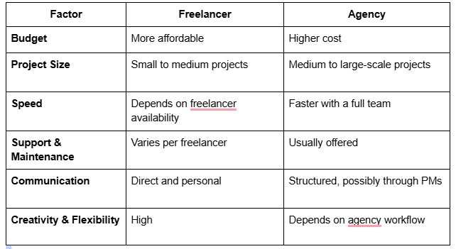 Let’s break down the differences between freelancers and agencies, and help you decide which one fits your goals, budget, and timeline best.